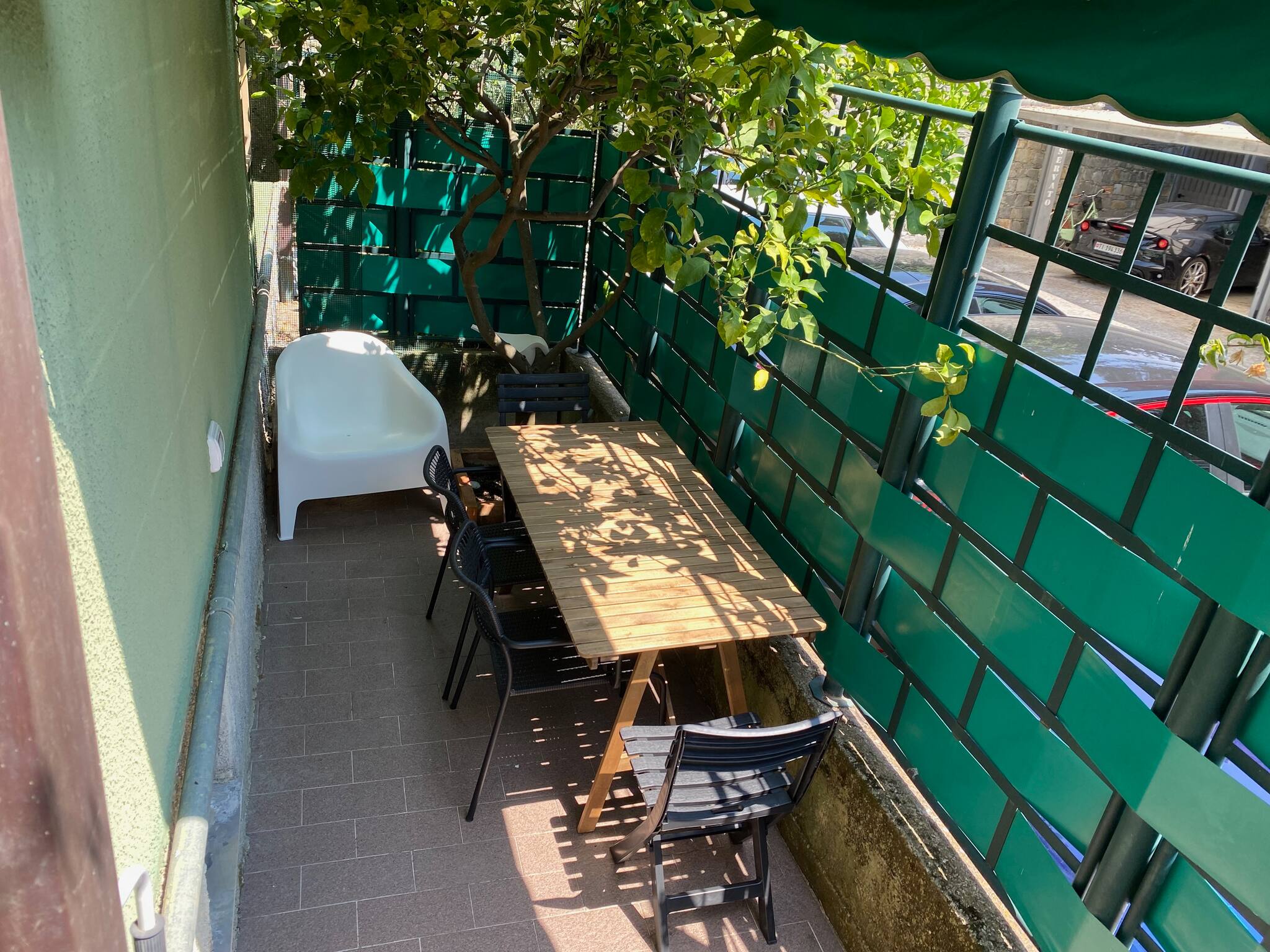 Un gioiello nascosto tra alberi di limoni, il patio esterno è perfetto per rilassarsi all'aperto. Arredato con tavolo, sedie e una tenda parasole, è lo spazio ideale per godersi colazioni, pranzi o cene "al fresco" in un'atmosfera tranquilla e ombreggiata.