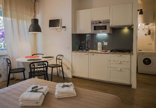 Zona giorno luminosa: Include un angolo cottura completamente attrezzato con piano cottura a gas, frigorifero, macchina da caffè Nespresso e un tavolo da pranzo. Il comodo divano letto matrimoniale a scomparsa è perfetto per ospiti aggiuntivi.