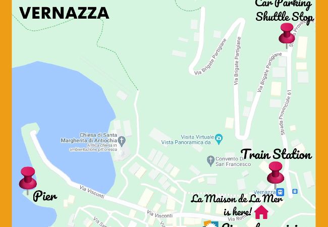 Perfetto per Esplorare: Situato su Via Guidoni, a due passi dal Castello di Vernazza e dall’accesso ai sentieri panoramici del Parco Nazionale delle Cinque Terre, come il Blue Trail verso Corniglia o Monterosso.