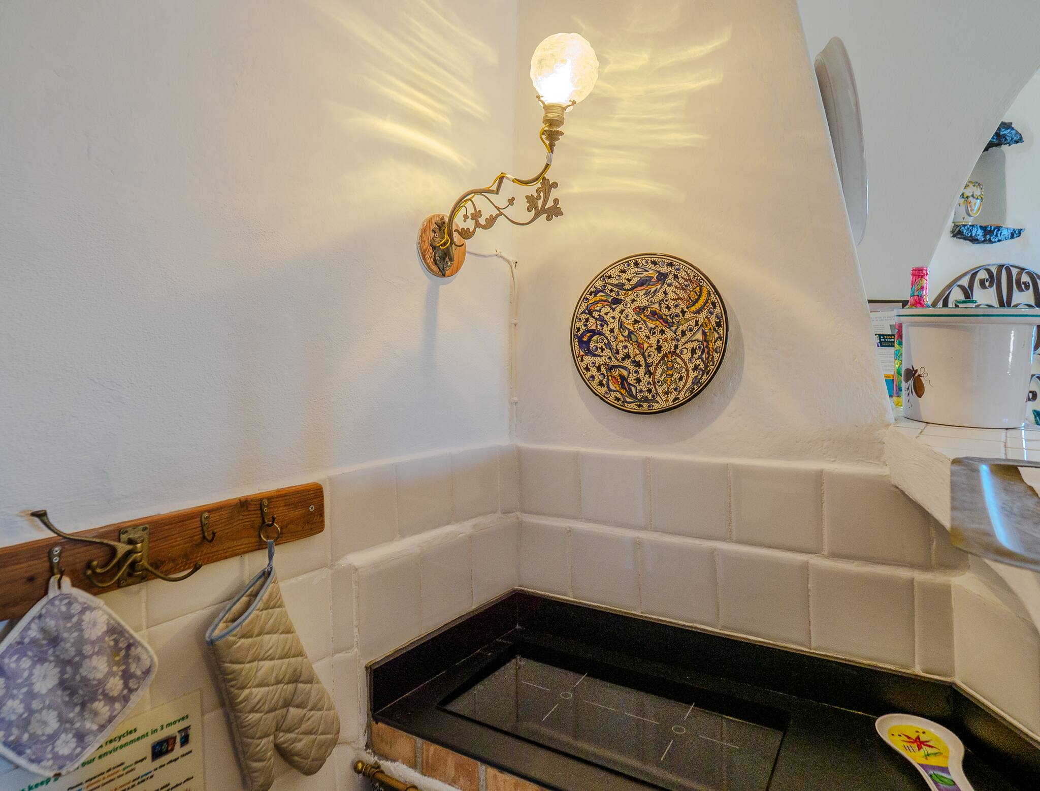 Die Offene Küche mit Induktions-Kochfeld ist ausgestattet in einen Kühlschrank, eine Mikrowelle, Gefrierschrank, Geschirr/Besteck, Kochutensilien, eine Kaffeemaschine, einen Wasserkocher und Herdplatte.