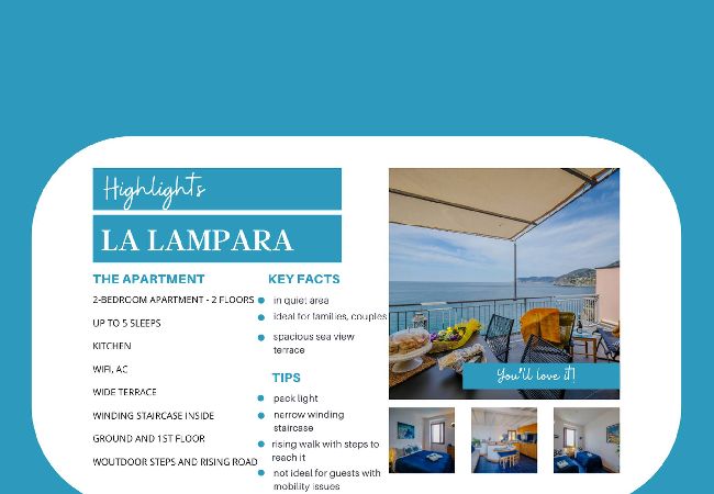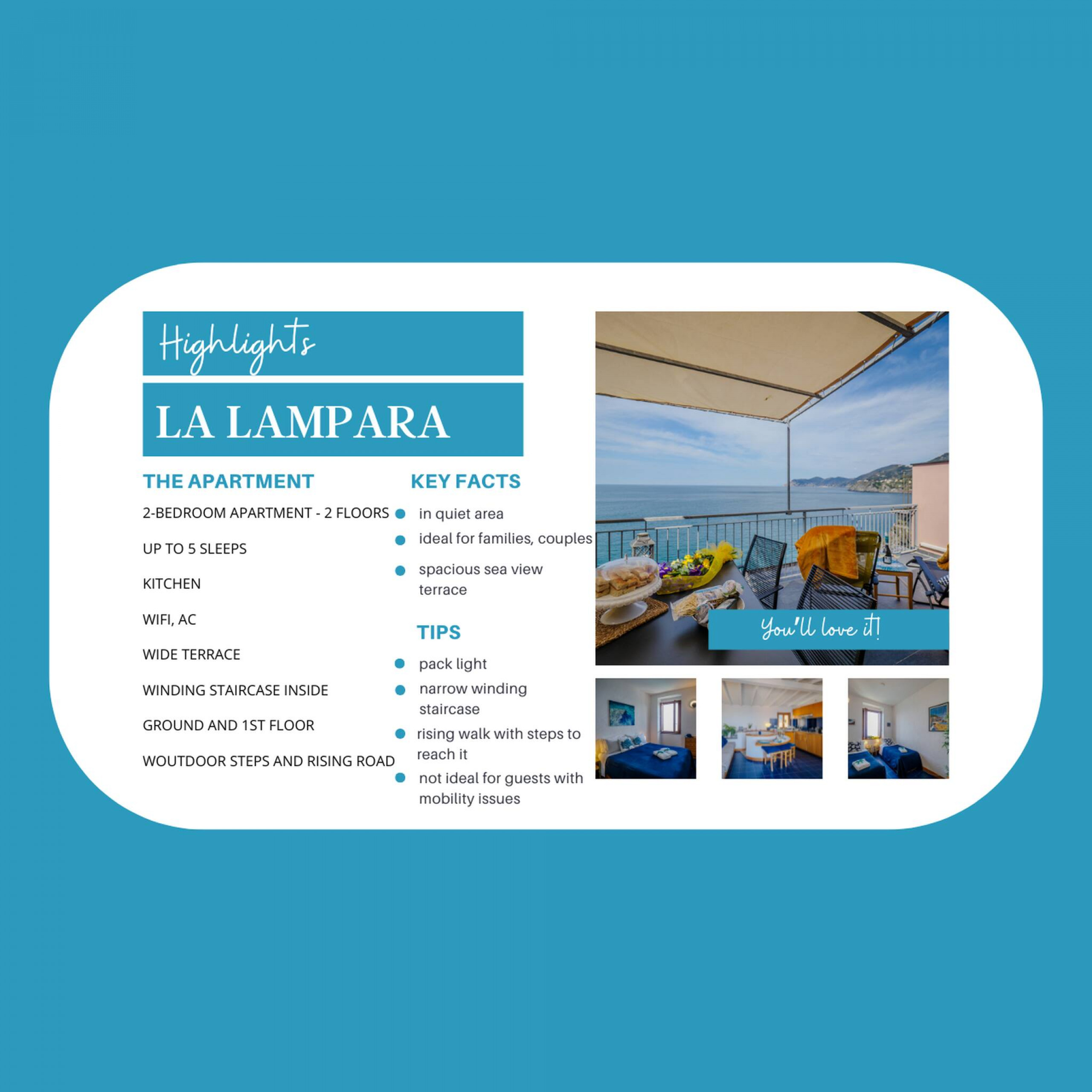 Die Ferienwohnung in Manarola verfügt über 2 Schlafzimmer und hat eine Kapazität für 5 Person(en). Unterkunft verfügt über 80 m². Die Unterkunft verfügt über Terrasse 10 m², eine Waschmaschine, ein Internetanschluss (WLAN), ein Föhn, eine Zentralheizung, eine Klimaanlage.Die Separate Küche mit Induktions-Kochfeld ist ausgestattet in einen Kühlschrank, eine Mikrowelle, Gefrierschrank, Geschirr/Besteck, Kochutensilien, eine Kaffeemaschine, einen Toaster, einen Wasserkocher und Herdplatte.