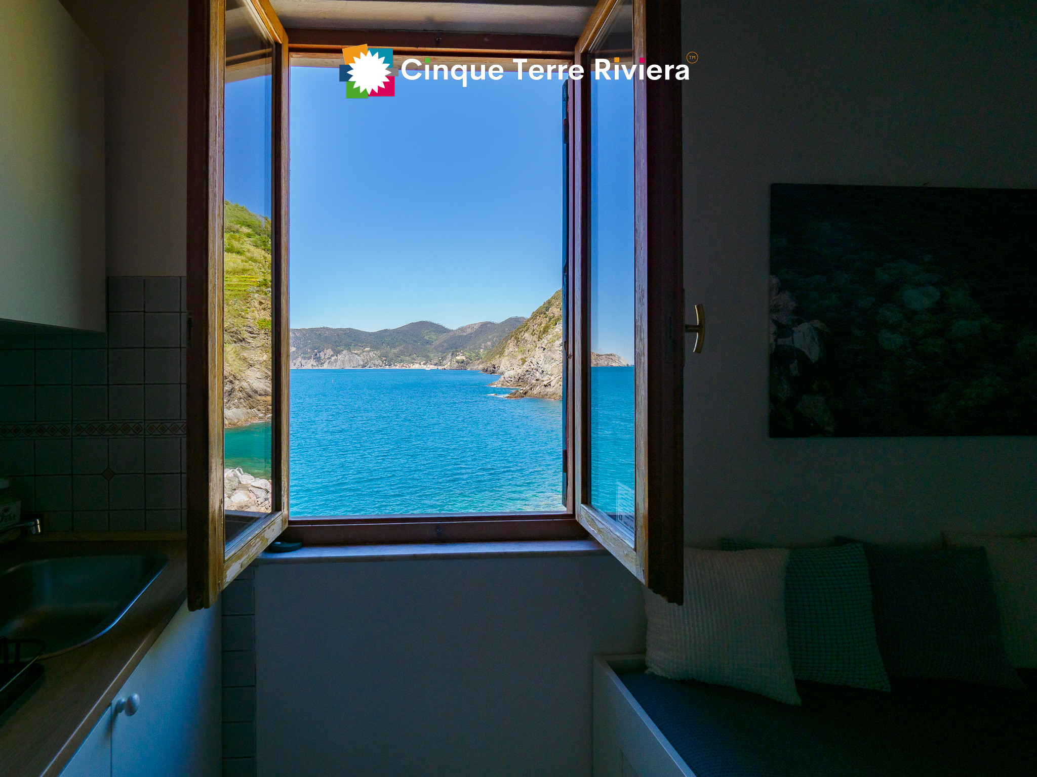 Der Wohnbereich bietet einen Platz in der ersten Reihe zur dramatischen Küste von Vernazza. Von leuchtenden Sommersonnenuntergängen bis zur Kraft von Winterstürmen ist das Meer immer der Star der Show — am besten genossen mit einem Glas lokalen Weins und dem Klang der Wellen darunter.