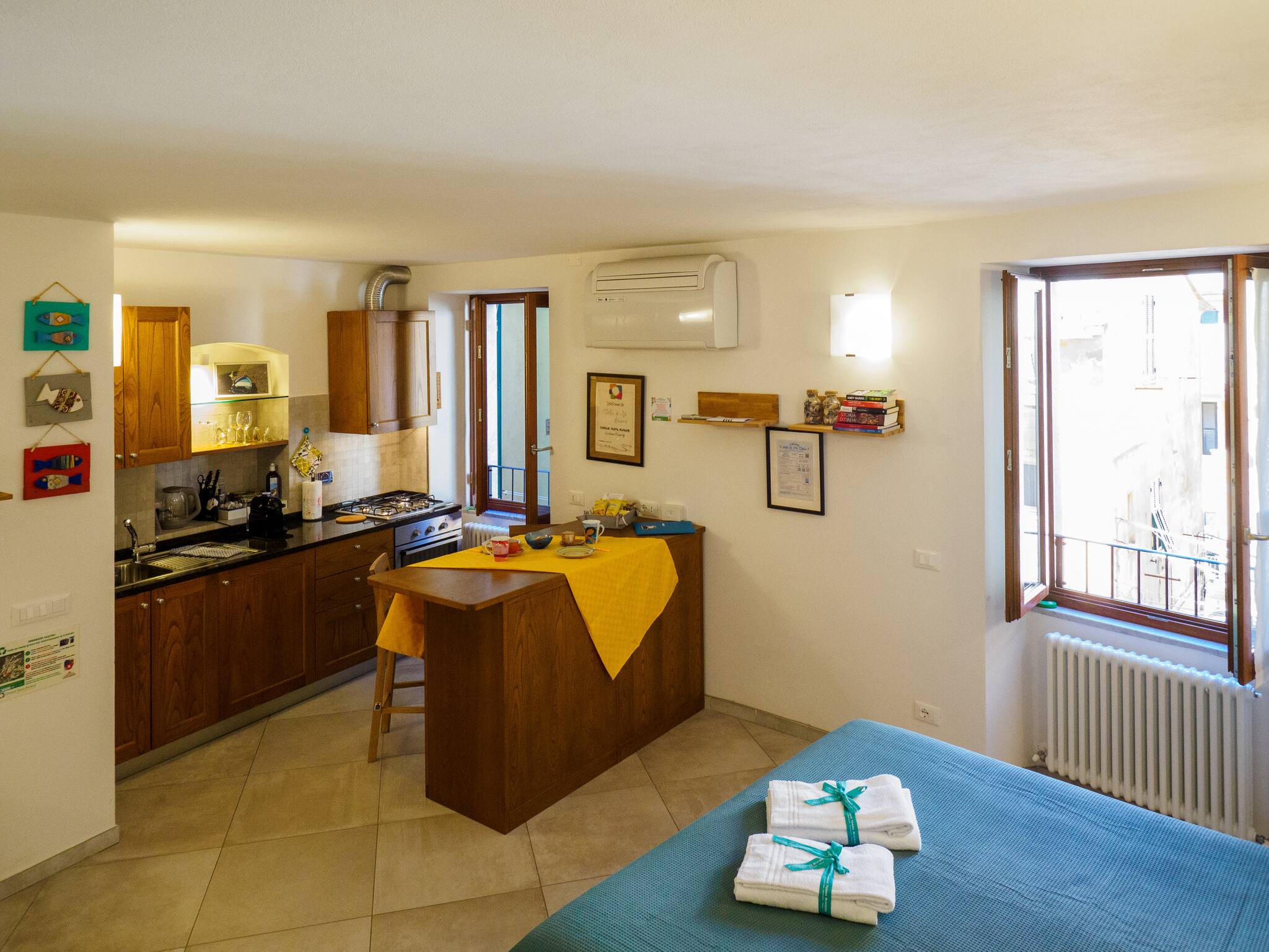 Nonna Rosetta Traditional ist ein charmantes und helles Studio-Apartment, das im malerischen Dorf Vernazza, einem der ikonischsten Orte der Cinque Terre, liegt. Im zweiten Stock entlang der lebhaften Hauptstraße gelegen, bietet diese entzückende Wohnung ein authentisches italienisches Erlebnis, ideal für Reisende, die Komfort, Charme und einen Hauch lokaler Kultur suchen.