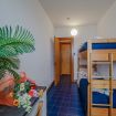 Twin Bedroom: With bunk beds and a wall-mounted fan.