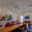 Cozy Living Area: A spacious open-plan space featuring two sofas, one of which converts into a single bed, and a dining table.
