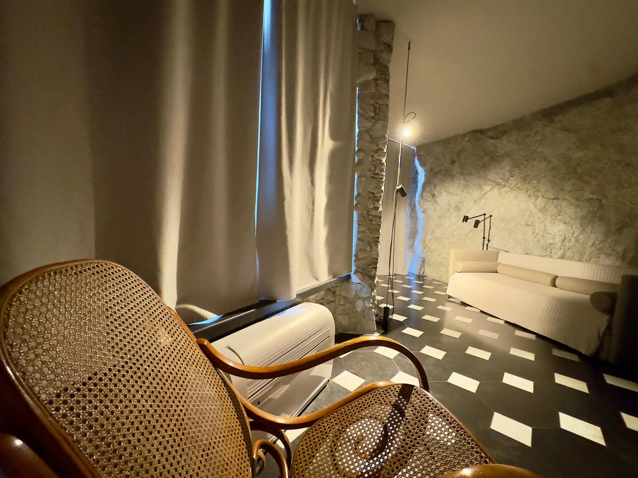 Room carved into the rock, equipped with air conditioning and configurable as a double bed, single or two separate beds.