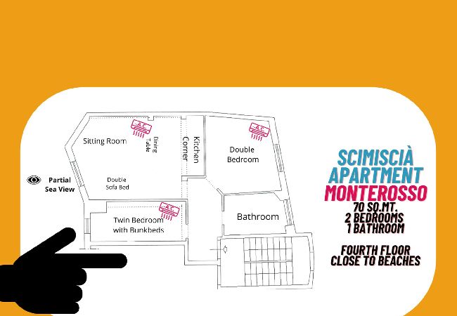 Discover the charm of Cinque Terre by staying at the Scimiscià 2-Bedroom Apartment with AC. With its central location, modern comforts, and group flexibility, it represents the ideal solution for an unforgettable holiday in Monterosso al Mare. Book now and start your adventure!