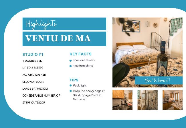 Discover the magic of the Cinque Terre with a comfortable and authentic stay. Ventu de Ma Studio #2 awaits to offer you an unforgettable experience in the heart of Vernazza.