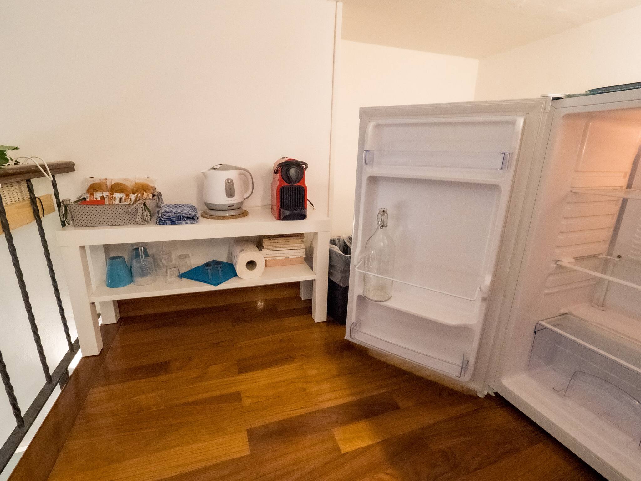 Una máquina Nespresso y un hervidor, para disfrutar de café e infusiones en cualquier momento del día;
