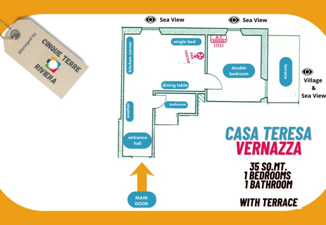 Situada en el último edificio de la famosa plaza principal de Vernazza, Casa Teresa disfruta de una posición privilegiada cerca del paseo marítimo que lleva al muelle de los ferries. A pesar de su posición elevada, la cuarta planta es fácilmente accesible gracias a un cómodo ascensor, una característica rara en Vernazza que añade un valor especial a la propiedad.
