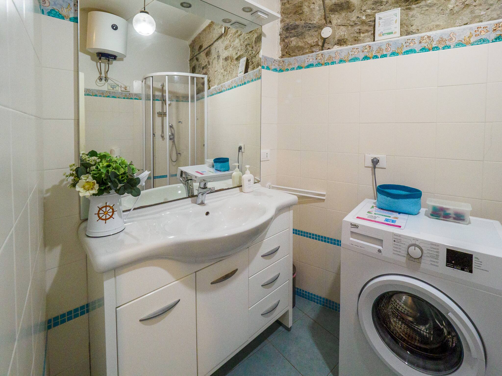 El apartamento en Vernazza posee 1 dormitorio(s) y capacidad para 4 personas. Alojamiento de 65 m². Dispone de lavadora, acceso internet (wifi), secador, 1 ventilador.La cocina independiente, de inducción, está equipada con nevera, horno, vajilla/cubertería, utensilios/cocina, cafetera, hervidor de agua y fogones.