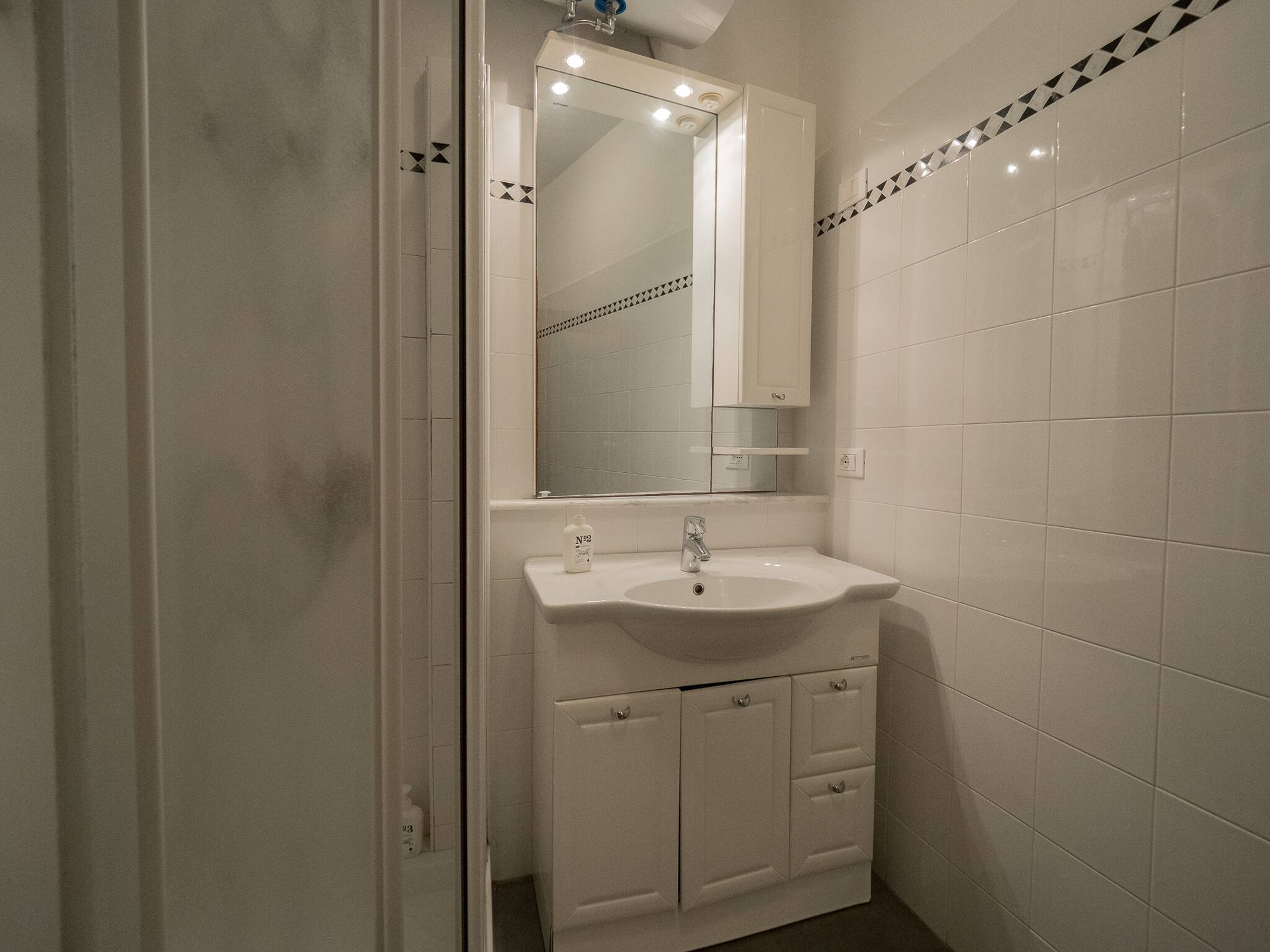 Entrando por una puerta de madera verde clásica, una marca distintiva de la arquitectura de Vernazza, los huéspedes son recibidos por un pasillo que conduce a la entrada del estudio. El interior se despliega en un espacio cuidadosamente diseñado: