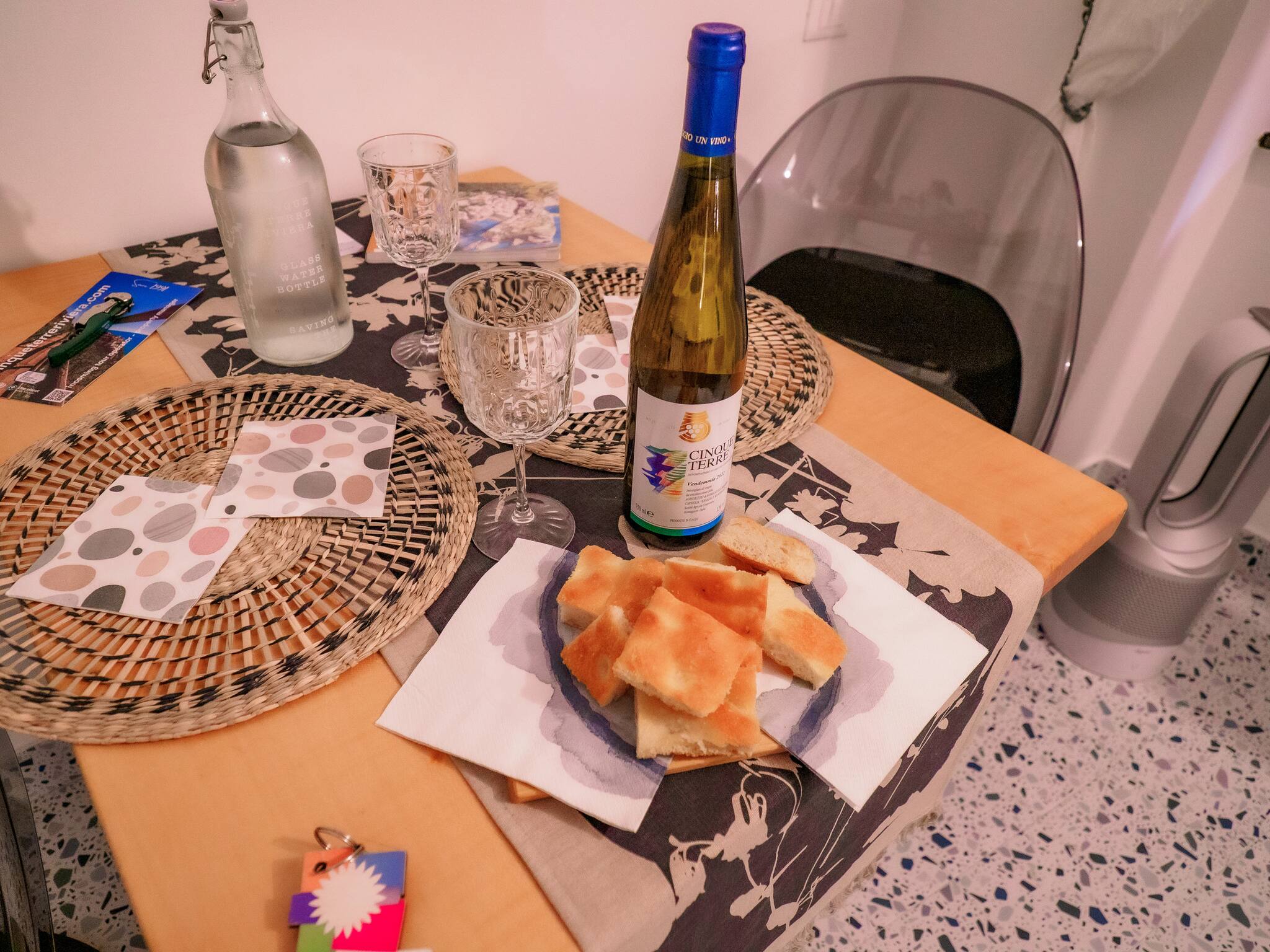 Una botella de prosecco y pan focaccia ligur harán tu llegada más alegre y relajada.