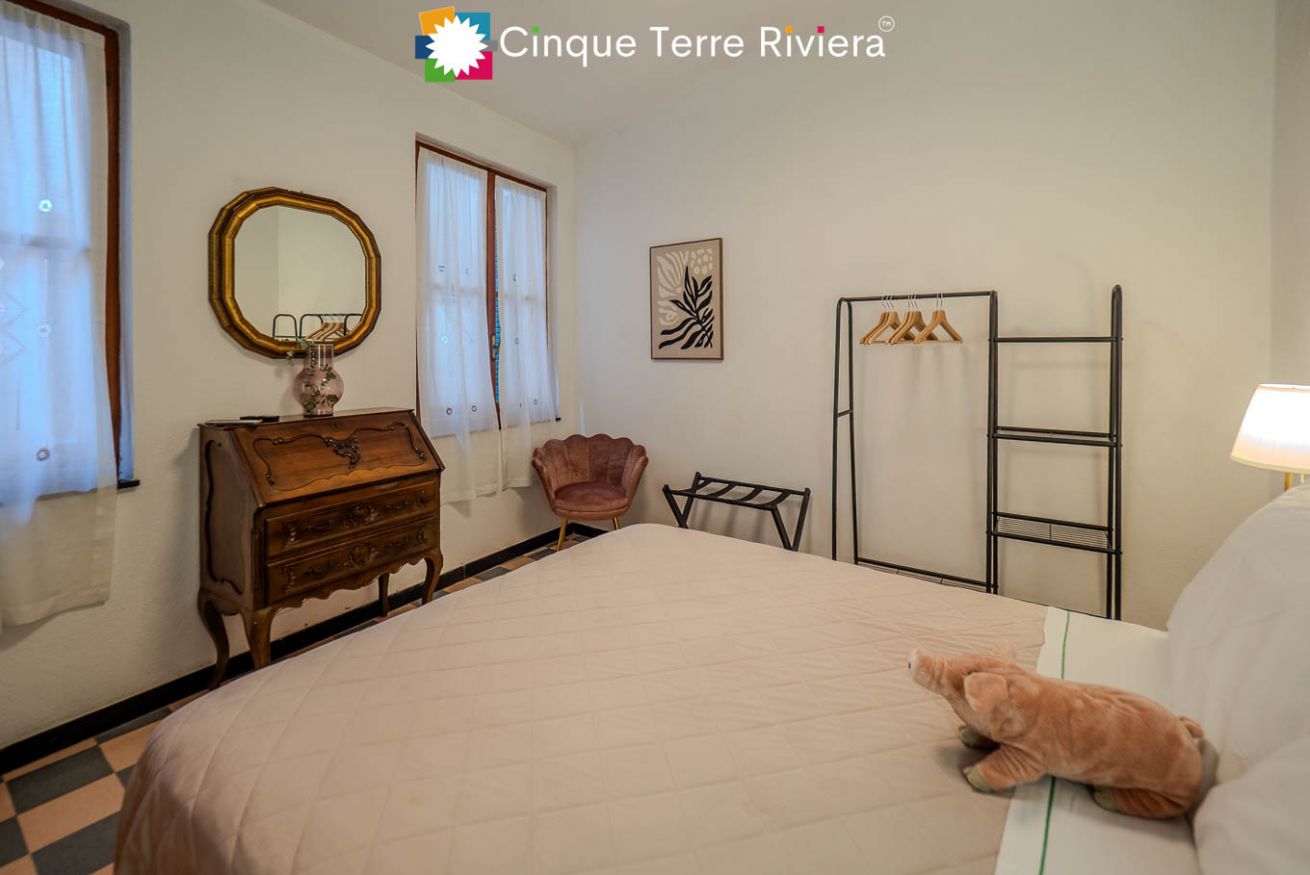 With its 40 m², Gemma can accommodate up to 5 guests and offers a view that is moving from the very first moment: the sea, the main square, the beach, the village rooftops, the bell tower of Santa Margherita Church and, to the right, the wonderful Cinque Terre vineyards, with Monterosso al Mare in the distance.