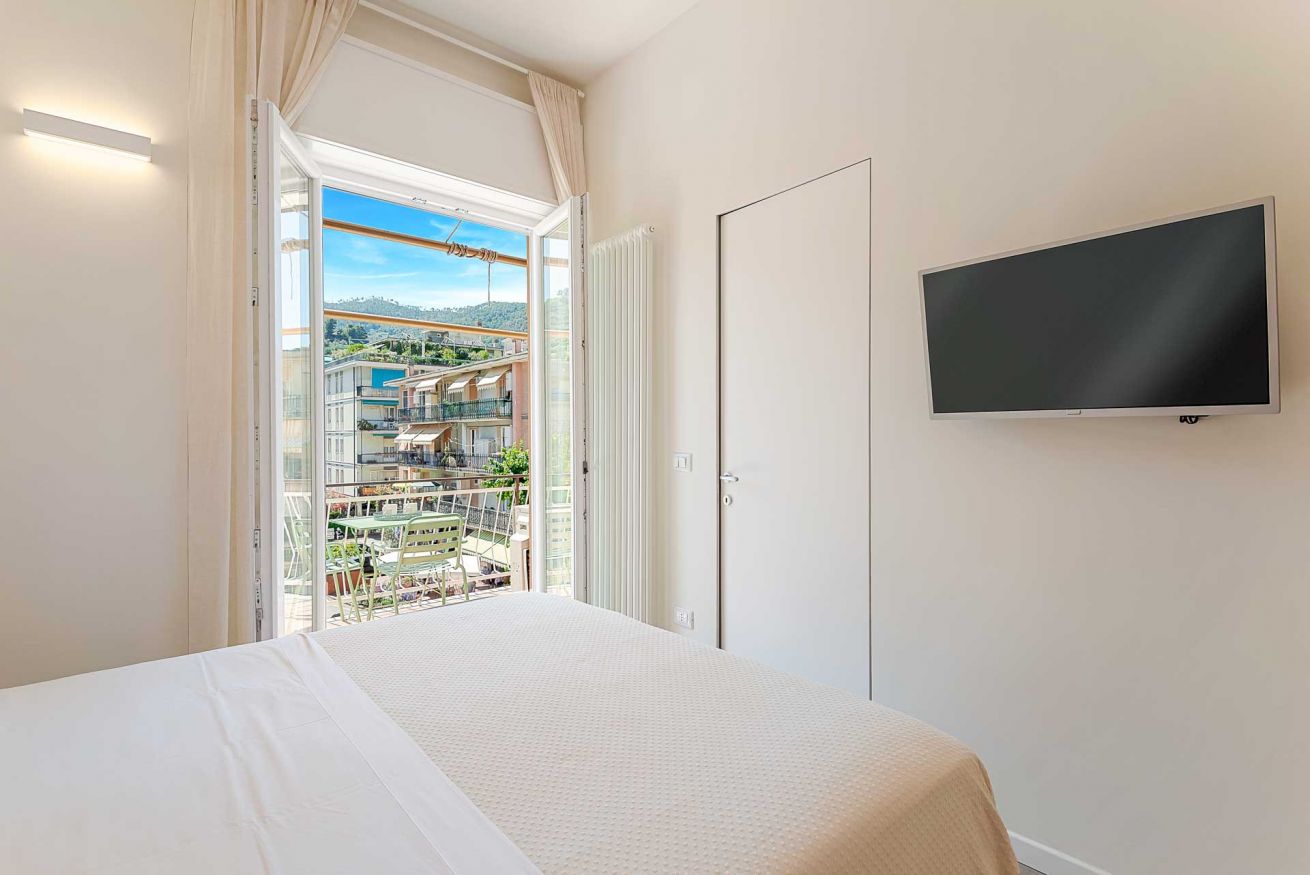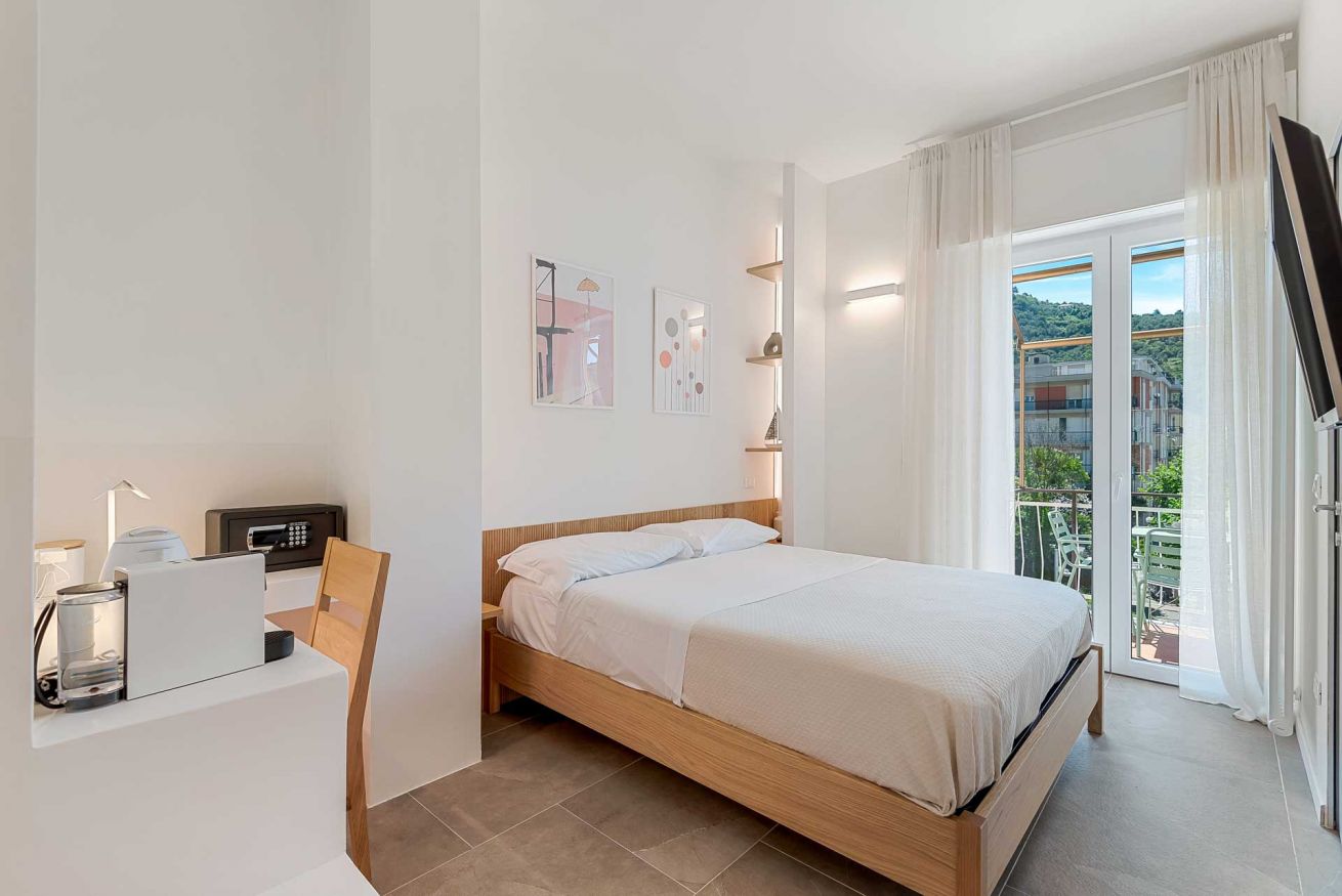 Isabella Boutique Rooms – Libeccio Balcony Room is an elegant and bright double room located in the heart of Levanto, perfect for those who wish to stay in a strategic position just a few minutes from the Cinque Terre, with the comfort of a boutique setting and a private outdoor space. Located on the second floor with lift, Libeccio is designed for couples or travellers looking for refined accommodation, without kitchenette, but with everything necessary for a relaxing and carefully detailed stay.