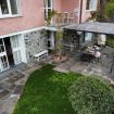 Elegant Living Room: Opens to a private garden featuring a pergola and an outdoor dining area, ideal for al fresco meals or relaxation.