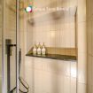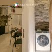 Private bathroom with shower, washing machine, dryer, and continuous-flow water heater.