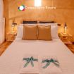 Romantic wooden loft with double bed.