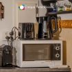 Fully equipped kitchenette: microwave, induction hob, Nespresso machine.