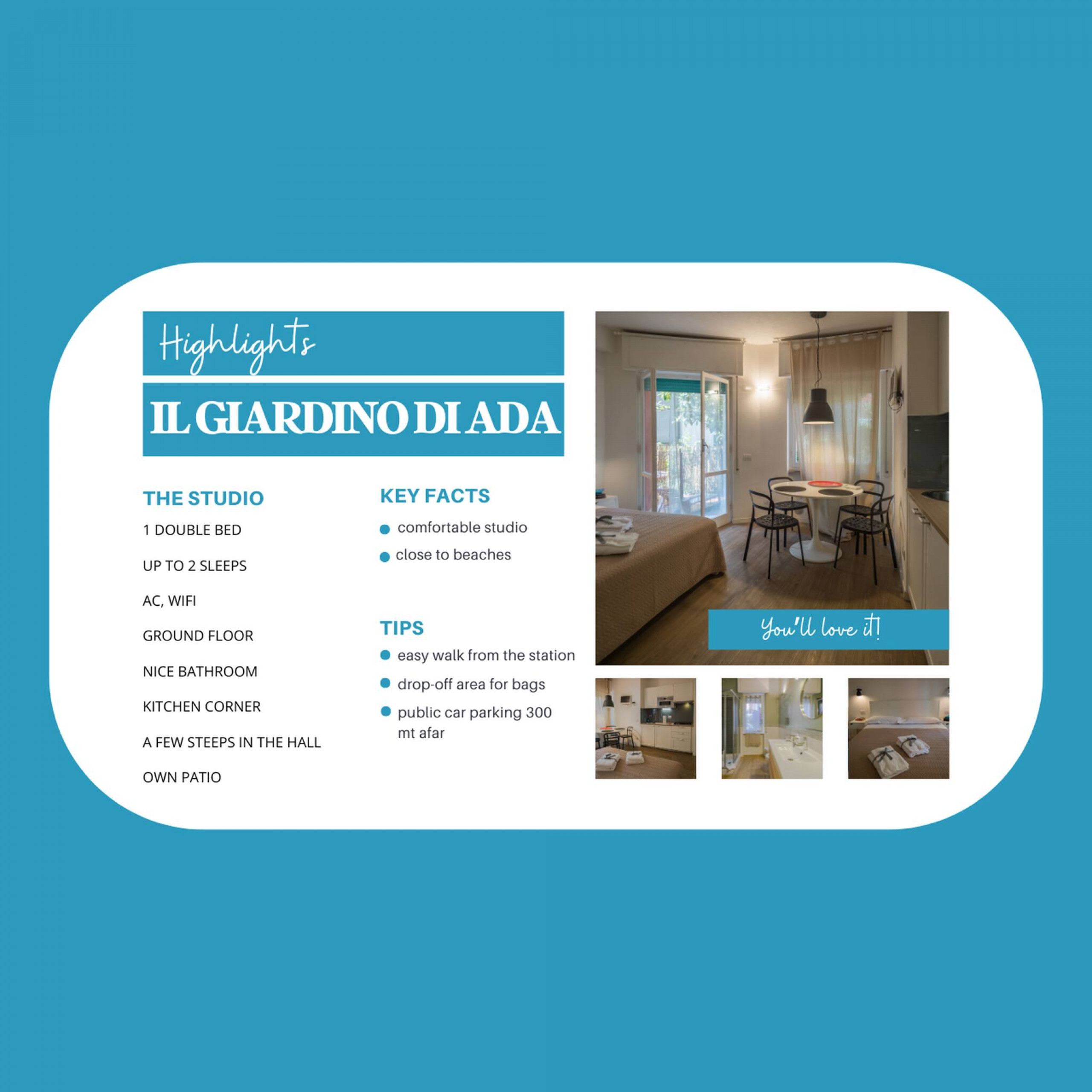 O apartamento em Monterosso al Mare tem 1 quarto(s) e capacidade para 2 pessoa(s). Alojamento de 30 m². Dispõe de jardim, mobiliário de jardim, máquina de lavar roupa, acesso internet (wifi), secador de cabelo, aquecimento central, ar-condicionado, 1 Televisão.A kitchenette, de inducção, está equipada com frigorífico, microondas, louça/talheres, utensílios/cozinha, máquina de café, jarro eléctrico e fogão.