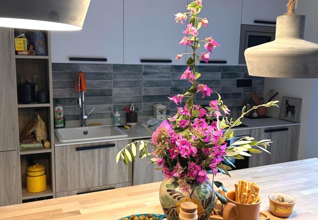 Piso Superior: O coração da casa – uma cozinha totalmente equipada que se abre para uma ampla varanda privada, dois confortáveis quartos de casal e uma casa de banho espaçosa.