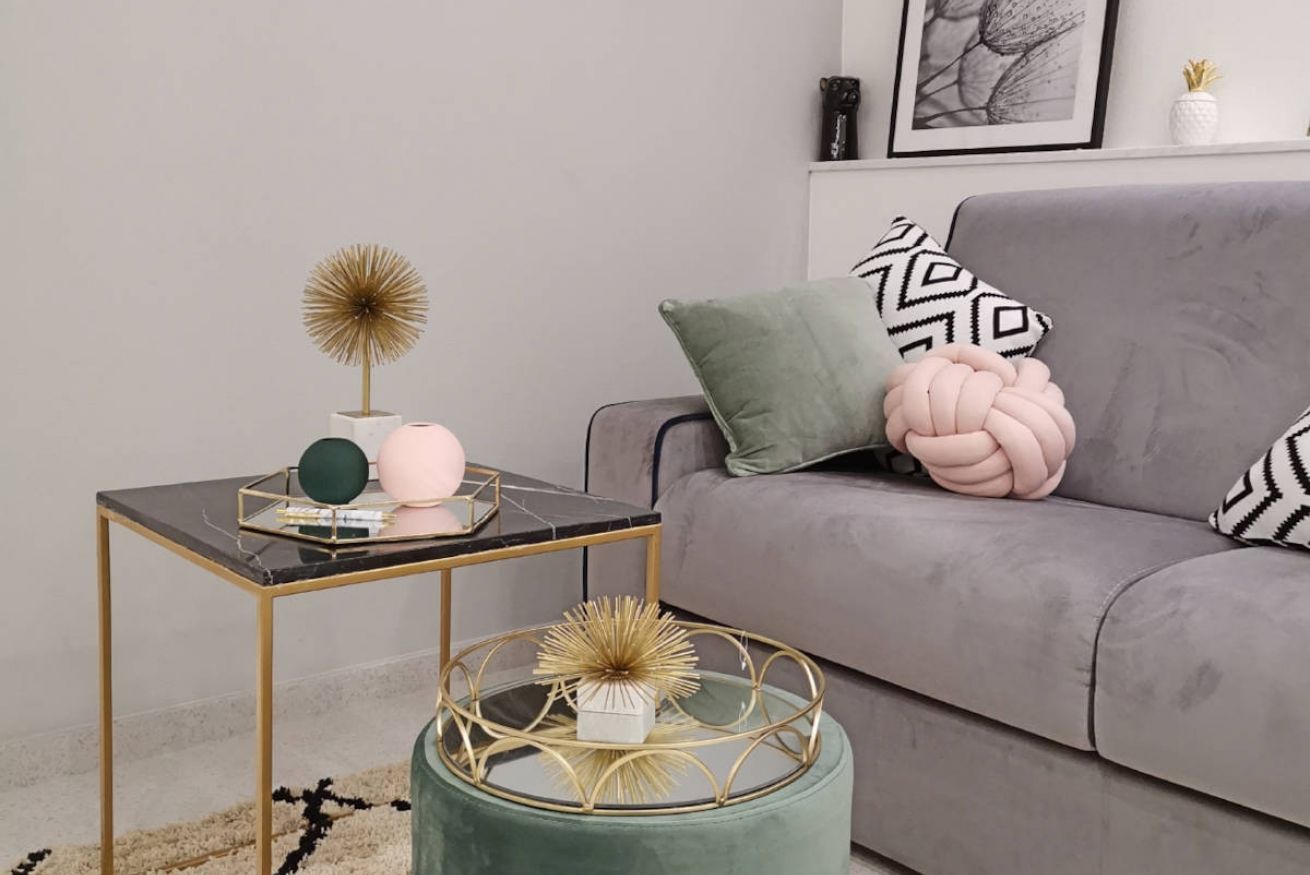 - A bright living room with a double sofa bed